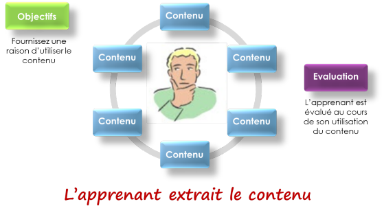 Cependant, avec cette approche, au lieu de vous focaliser sur un design de contenu, vous vous concentrez sur les motifs à fournir à l’apprenant pour qu’il « tire » à lui le contenu dont il a besoin.